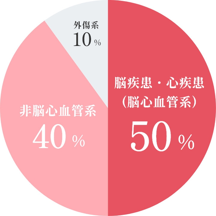 心疾患はAED(自動体外式除細動器)を使った迅速な処置を行えば蘇生できる可能性がある一方、脳疾患の場合は応急処置が可能な機器がないため、発症時に即座に対応することが難しいといわれています。