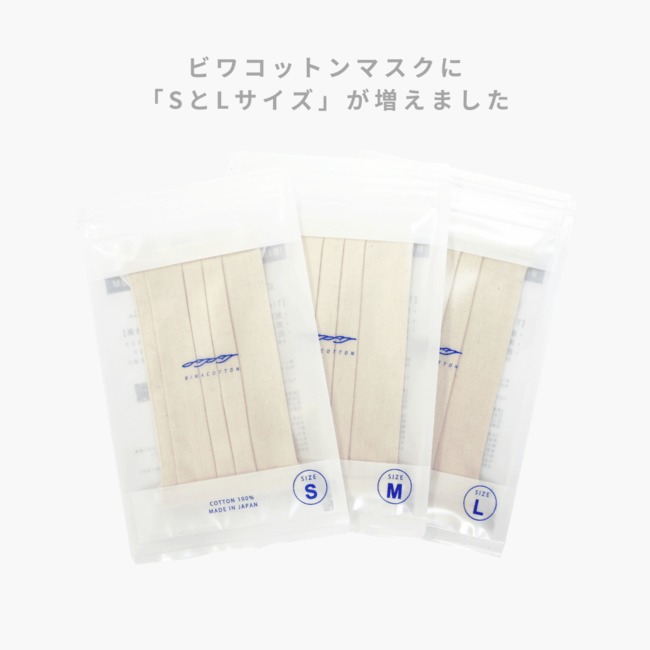 「息苦しくないマスク」からっと、かるい、きもちいい。好評のビワコットンマスクにS・Lサイズを追加
