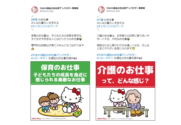 特設サイトだけでなく、Twitterにおいてもハローキティをはじめとしたサンリオキャラクターを起用し、福祉業界のイメージアップを図るためのプロモーションを展開しています。