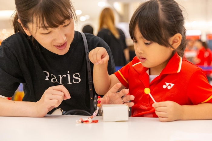 今回のイベントでは、名古屋Dが初の地区優勝を果たしたB.LEAGUE 2023-24 SEASONとCHAMPIONSHIP 2023-24での活躍の写真展や、「推しグッズ」としてお気に入りの選手の名前が入れられるビーズアクセサリー作り体験、選手のサイン色紙などが当たる抽選会が行われました。準備したビーズや抽選会の景品が途中でなくなるほどの盛況ぶりでした。
