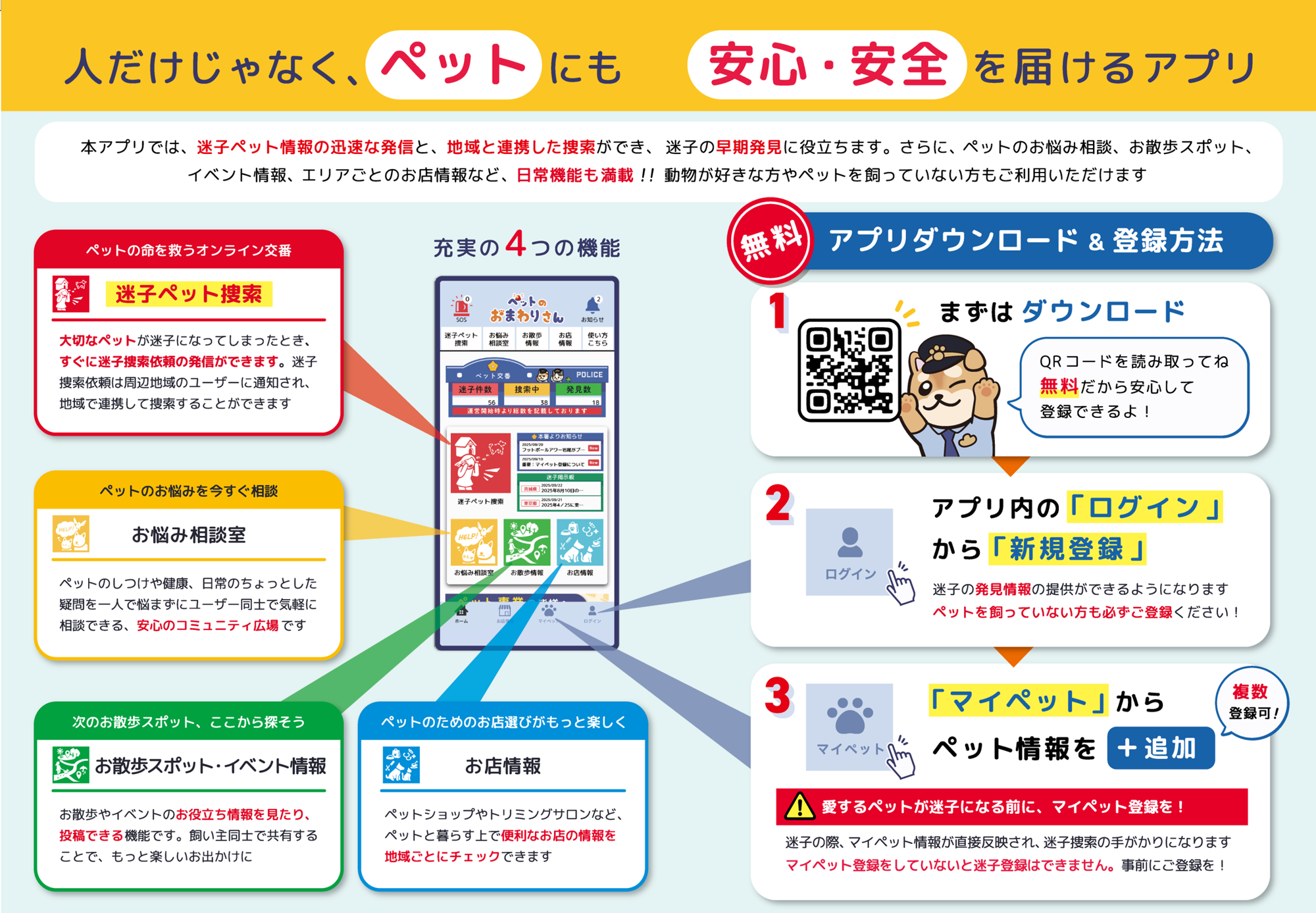 ▼無料スマートフォンアプリ『ペットのおまわりさん』ダウンロード