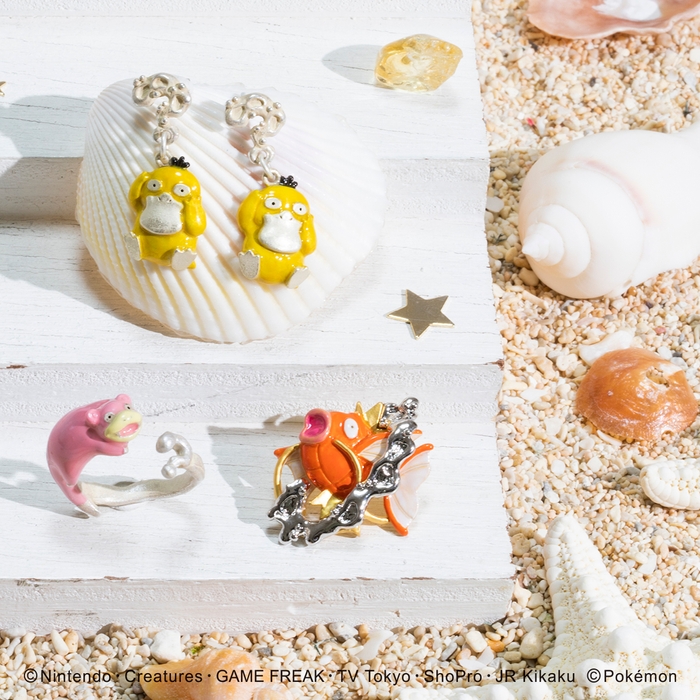 今回の新作は夏らしい爽やかなアイテムが勢ぞろい!美しい歌声を聞かせてくれそうなラプラスのブローチや、のんびりとした表情が可愛らしいヤドンのリングなど、全8種類が登場します!