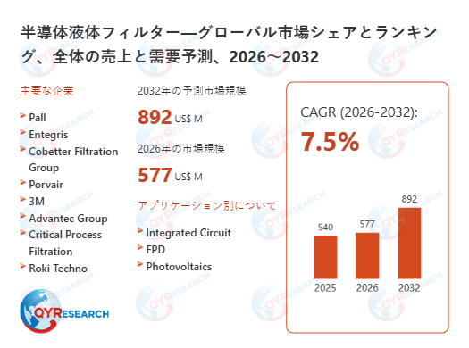 上記の図表/データは、QYResearchの最新レポート「半導体液体フィルター―グローバル市場シェアとランキング、全体の売上と需要予測、2026~2032」から引用されている。