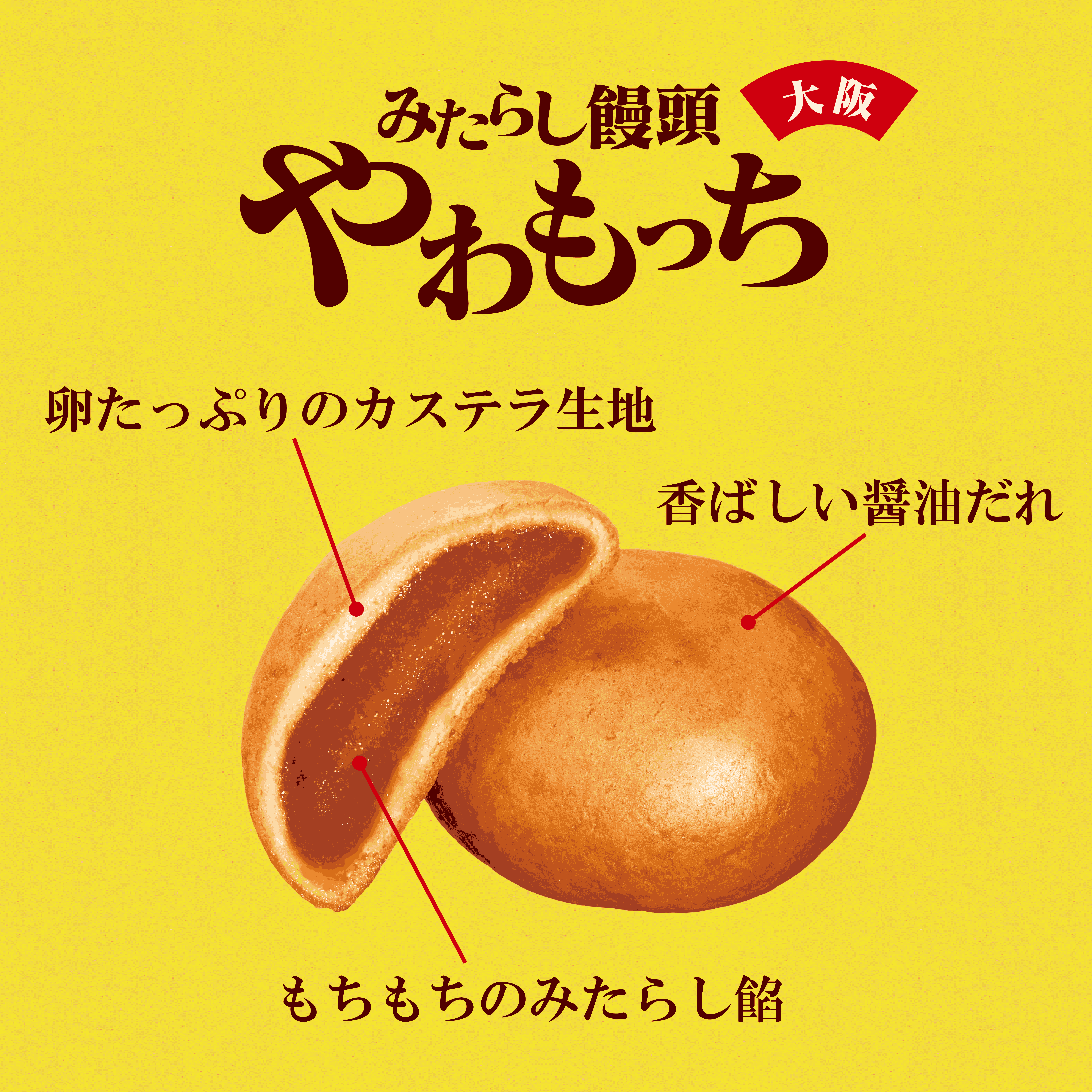 『みたらし饅頭 やわもっち』は、こうした大阪で愛されてきた味わいに着目し、その魅力を日持ちのするお土産菓子として楽しんでいただけるように開発した商品です。