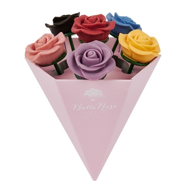 大正元年創業のチョコレートメーカーであるハンター製菓株式会社(本社:東京都中央区、代表取締役:柳澤 慎一)は、同社が運営する薔薇のブーケチョコレート「ベルローズ・ボヌール」より、期間限定の新商品、「【NET限定】6本ブーケ」と「フリュイ 5本ブーケ」の2アイテムをリリースしました。「【NET限定】6本ブーケ」には、新フレーバーの「漆黒」が含まれています。