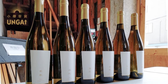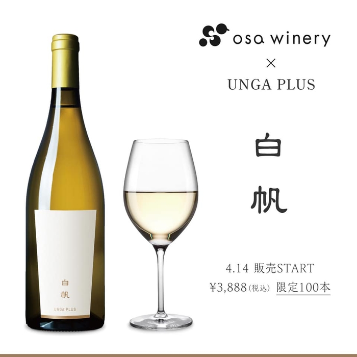 小樽でワイナリーを営むOSA WINERYとコラボレーションしたUNGA↑初のオリジナルワイン「白帆」。