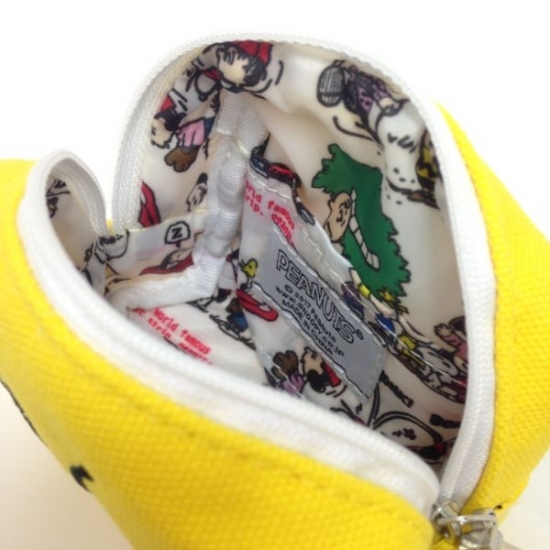 お馴染みのイエローカラーのポーチです。ウッドストックのフェイスデザインで、バッグの中でもすぐ目につきますね。ミニミニサイズなので、コンパクトでバッグの中でも邪魔になりません。