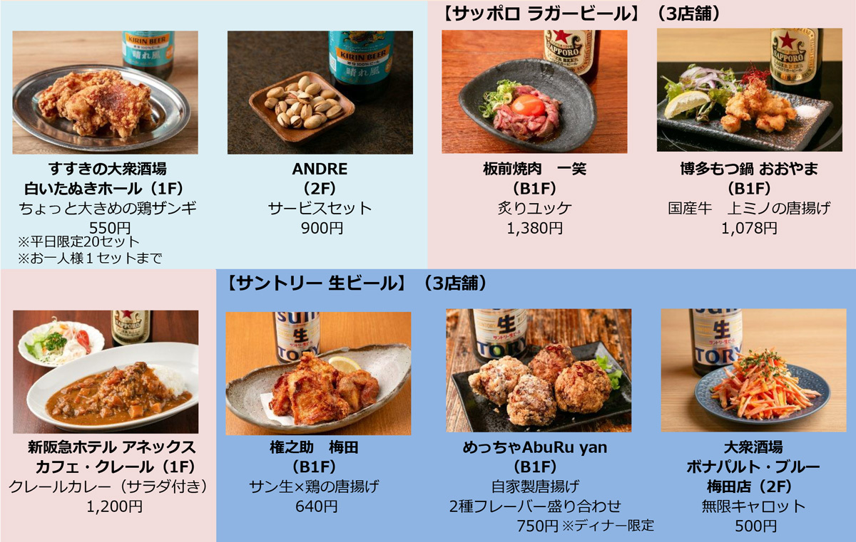 (1)4大ビールメーカーとフードの特別セットメニュー提供(全17店舗)