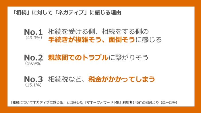 ■「相続」というキーワードは、32.4%が「ネガティブに感じる」。その要因に「複雑そう、面倒そう」