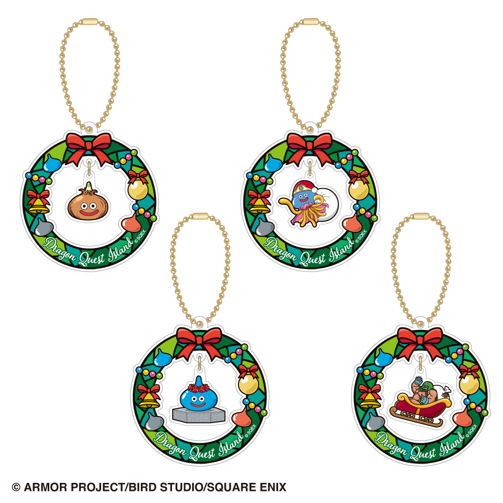 今回、クリスマススペシャルと題し、4つの限定商品を新たに販売いたします。「ドラゴンクエスト アイランド」のオリジナルモンスター“たまねぎスライム”や“ホミロット”がクリスマスの衣装でリースの中を可愛く揺れる「ゆらゆらリースアクリルキーホルダー」やモンスターたちを自分の好みに合わせて飾りつけられる「クリスマスツリーアクリルスタンド」、そしてオリジナルデザインの「クリスマス巾着」と「クリスマスポストカード」が登場! その他、通常は「ニジゲンノモリ」現地でしか購入できない、「ドラゴンクエスト ふくびき所スペシャル 〜大魔王ゾーマとはじまりの島!編〜」をはじめとするコラボグッズの数々も販売いたします。