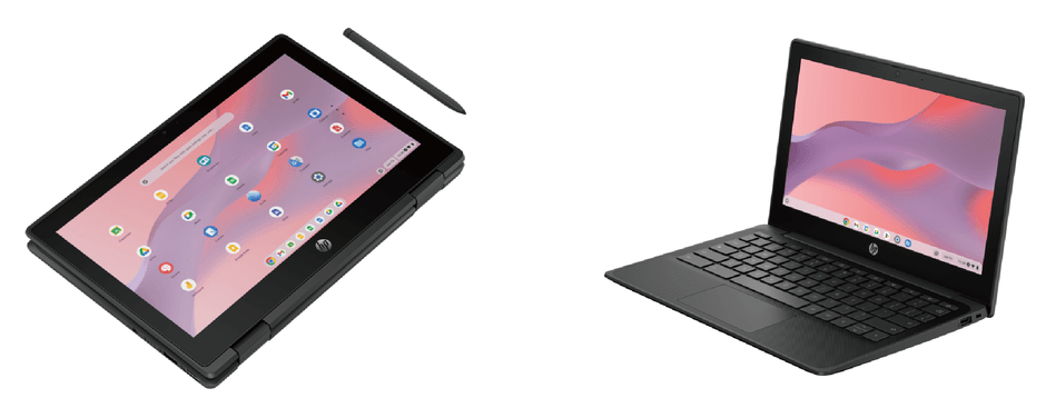 日本HPは文部科学省が掲げるGIGAスクール構想の第2期に準拠しChrome OSを搭載した、基本パッケージの「HP Fortis Flip G1m 11 Chromebook」と応用パッケージの「HP Fortis x360 G5 Chromebook」の2モデルを提供しています。日本HPの教育向けノートPCは、先生、生徒、学校管理者からの声をもとに開発。耐久性、拡張性、汎用性を兼ね備えた、教育向け専用設計のノートPCです。