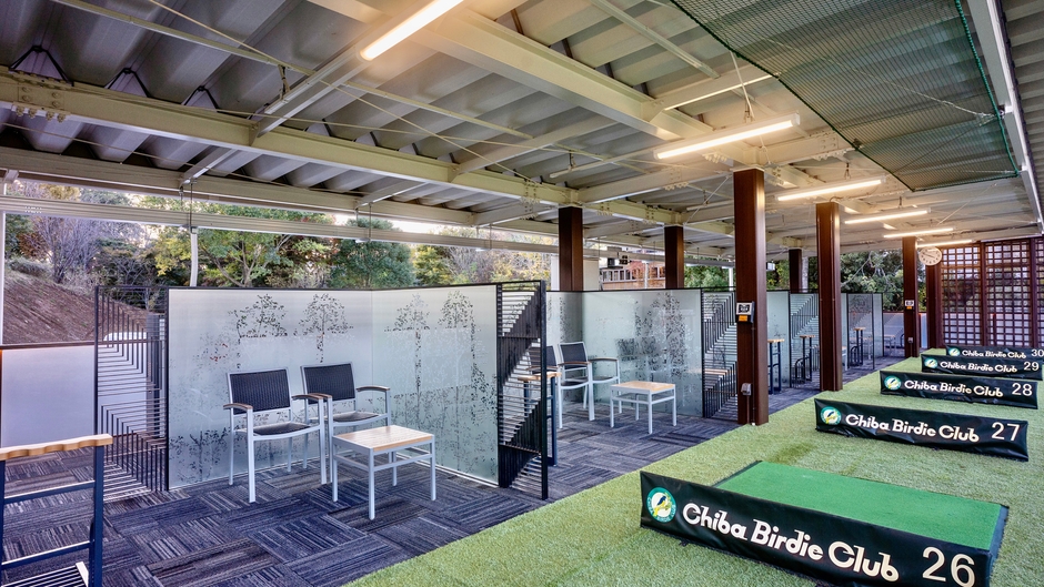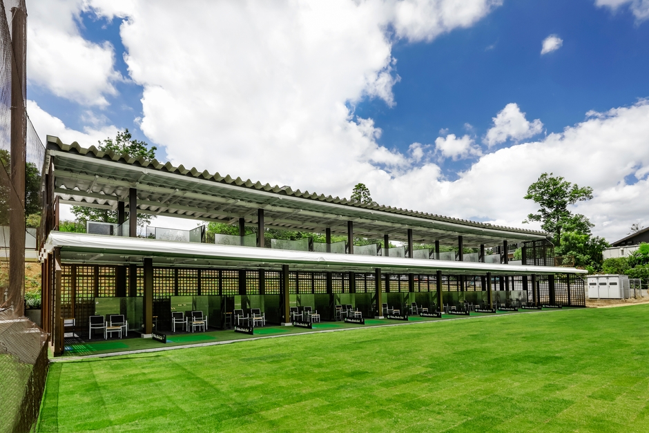 屋根付き2階建ての建物には各フロア15打席(全30打席)と打席をゆったりと設けており、全ての打席にデザインガラスを用いた上品な仕切りを設置することで、他の練習場では見られない打席ごとに仕切られたプライベート空間を実現しました。フェアウェイは250ヤードと開放感にあふれ、周りを気にせずに思う存分練習に打ち込むことができる環境をご用意いたしました。