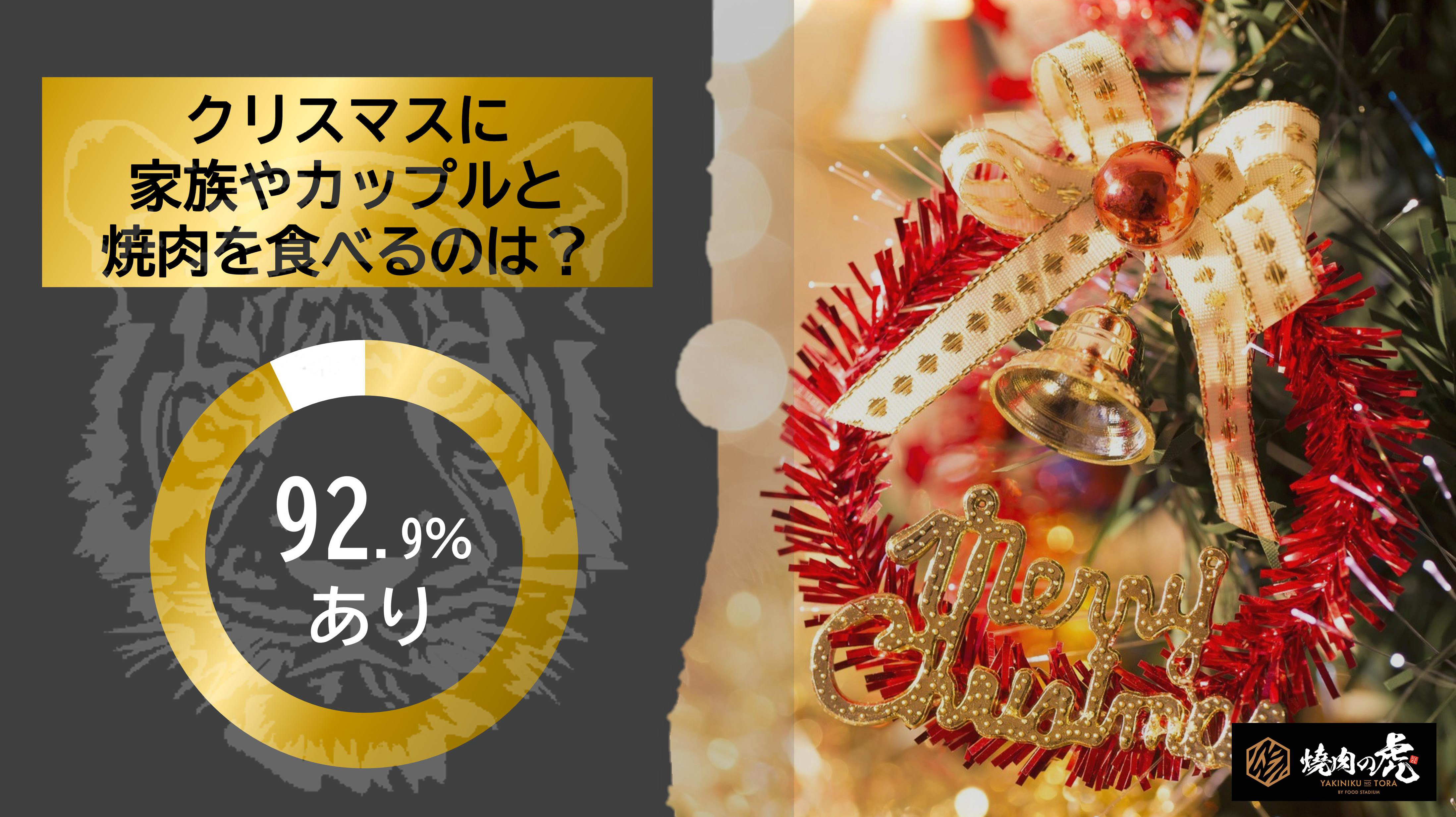 「焼肉の虎」が公式Xで「クリスマスデートに焼肉はありなし?」調査を実施 クリスマスに焼肉は「あり」と回答した人は92.9%