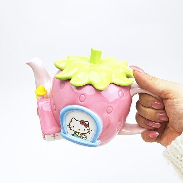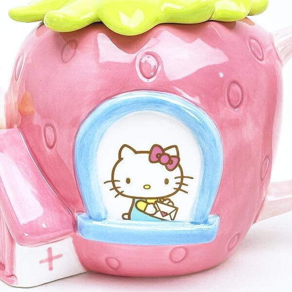 今度はいちごのお家がそのままティーポットになったようなデザインです。キティがいちごのお家の窓から顔を出す姿にきゅん。小さいお家のドアもしっかり再現されていてこのミニチュア感にも胸キュンポイントが隠されています。見れば見るほどきゅんきゅんする~。