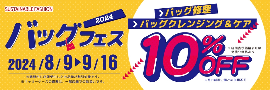 8月9日「かばんの日」記念!バッグ修理・クレンジング&ケアが 10%OFFになる「バッグフェス」を9月16日まで開催