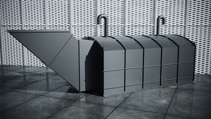 新築建物の地下部分として、又は今ある家の庭先スペースに埋設し、通常時は便利な地下居室や多目的ルームや倉庫として、また、核ミサイル攻撃等の非常な脅威の場合は、化学的・生物学的または放射性降下物の検出やフィルターシステムに対応した核シェルターになります。