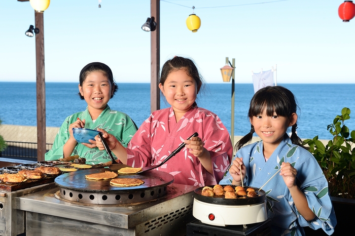 キッズメニューや本格流しそうめん、たこ焼き、かき氷体験コーナーも人気です。その他、キッズアメニティーや花火セットなどのプレゼント、縁日遊び、温泉卓球などのファミリーイベントを多数開催。美味しく楽しい思い出になる夏休みをお過ごしください。