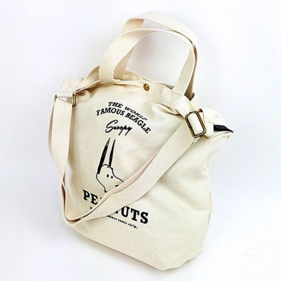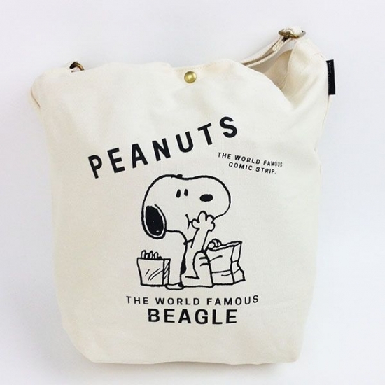 最初からかわいさ全開のスヌーピーがデザインされた、ショルダートートーです。スナックを食べるスヌーピーがキュートですよね。キャンバス素材なので、軽くて便利です。ショルダーとしても、トートーとしても使える2WAY仕様がオススメポイントです。