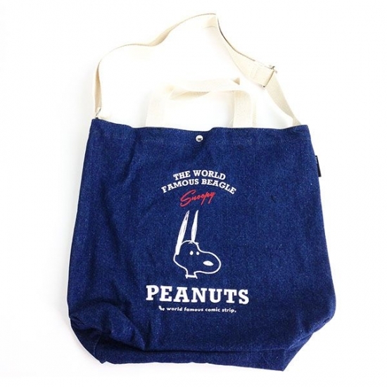 続いては、デニム素材のショルダートートーです。デザインはビックリスヌーピー♡カジュアルになりがちなニムですが、かわいいワンピースにカジュアルなデニムのトートーでハズすのもオススメですよ。