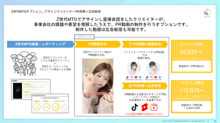 Z世代MTGにてアサインし、直接会話をしたクリエイターを活用して、PR動画の作成・投稿・広告配信を行います。