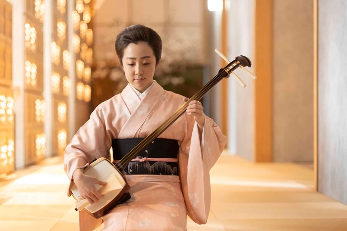 江戸の花見に歌舞(かぶ)音曲(おんぎょく)はつきもので、人々は三味線をはじめ楽器を持って花見に行き、桜の木の下で演奏したり、歌を歌ったりして宴を楽しんでいました(*2)。そこで、本アクティビティでは、江戸時代に発展した筝曲流派「山田流」の山田流筝曲萩岡派による三味線の演奏を船上で行います。また、江戸の女性は、花見小袖など着飾って花見に出かけていたことから、希望者には着物の貸出しと着付けができます。