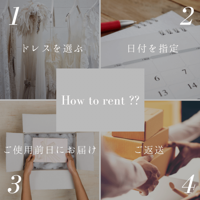 3.商品はレンタル日前日に余裕を持ってお届けします。ご使用後は近くのコンビニなどから簡単に返却が可能です。レンタル料金の中に通常クリーニング代込み。10000円以上のご利用料金で配送料も無料です。