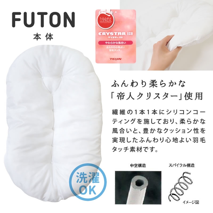 繊維の1本1本にシリコンコーティングを施しており、柔らかな風合いと、豊かなクッション性を実現したふんわり心地よい羽毛タッチ素材です。