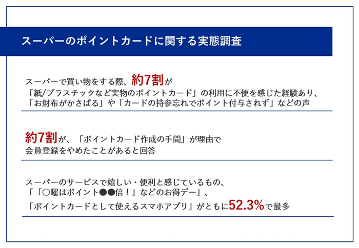 ニュースリリース|【地方スーパー利用者に調査】 子育て世代が多数共感の”会員カードあるあるエピソード”「お財布がかさばってしまう」が92.0% 〜負担を軽減し、利用者が気軽にポイントを貯めたくなる最適な方法とは?〜