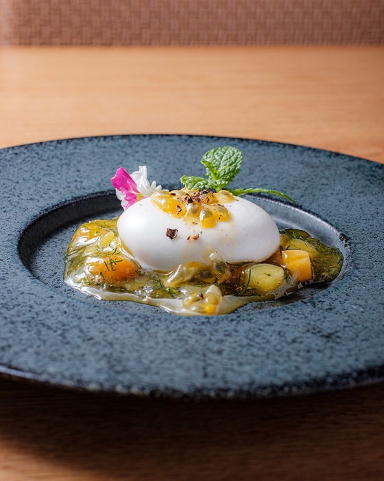 ゆと森倶楽部の斎藤シェフは、チーズ職人の手により湯の中で手早く練られ、新鮮なミルクの風味が感じられる出来たての温かいチーズを味わった経験から、「シンプルに出来たてをお客様に食べていただきたい」とメニューを考案しています。これまでのイベントでは、ディナーの前菜(アミューズ)やオードブルなどに仕立てました。