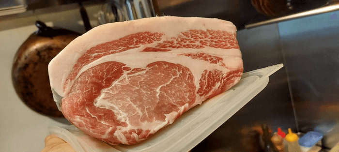 金華豚は日本の米を食べて育った豚で霜降りが素晴らしく、和牛を越えると言われるほどの豚肉。「幻の豚」ともよばれている世界でも希少な最高品種の豚肉です。