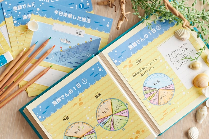地元漁師と漁に出て魚を獲ったり、獲った魚を市場に卸したりして、1泊2日の滞在を通し漁師の仕事を学ぶことができます。4回目の開催となる今回は、自分で獲った魚を漁師に教わりながら捌き、土鍋ご飯とあら汁にして味わう体験が加わります。漁師の仕事を学ぶだけでなく、食へのありがたみも一緒に感じられる体験です。最後は「スイスイワークシート」にわかったことや気づいたことをまとめます。