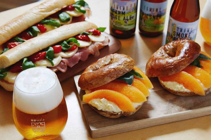 注ぎたての生ビールを片手に広大なファームで乾杯!「ファームクラフトビアガーデン」を開催します。当イベントでは北海道内のビール醸造所と共同開発した、5種類のオリジナルクラフト生ビールを提供します。今年は、喉ごしとキレが特徴の「トマムピルスナー」をサーバーから注ぎたてで提供。オリジナルグラスに注いで好きなだけ飲むことが可能です。また夏が旬のメロンを使った「メロンとマスカルポーネのベーグルサンド」が登場します。