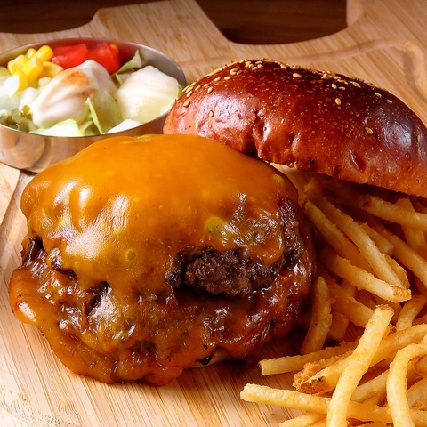 看板メニューはアメリカ大統領のためにレシピを開発した“ザ・プレジデントバーガー”で、米国産ビーフ100%、希少部位“ミスジ”を使用した超粗挽き肉のパティ2枚、チーズ4枚の豪快なアメリカンバーガーです。