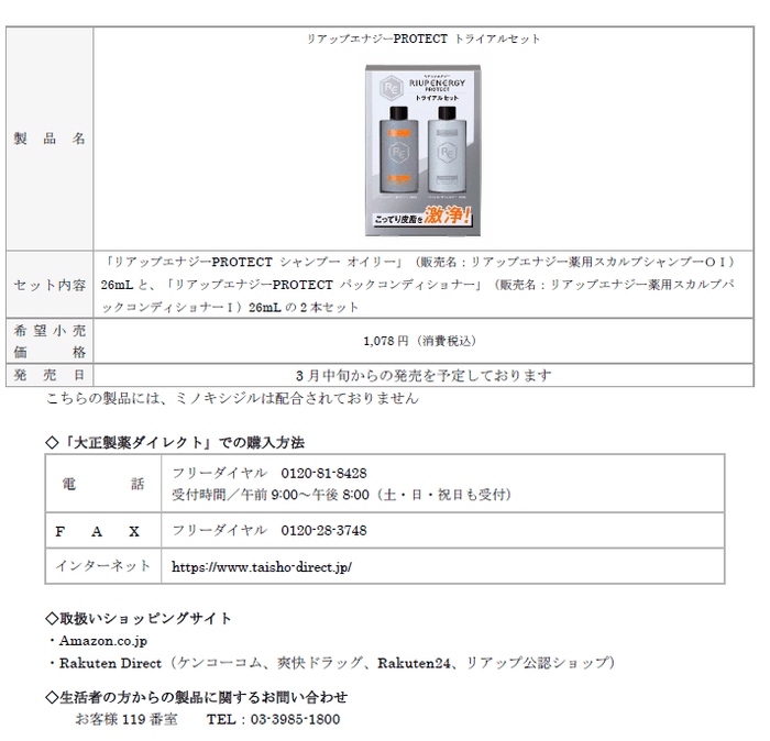 「リアップエナジーPROTECT」新発売