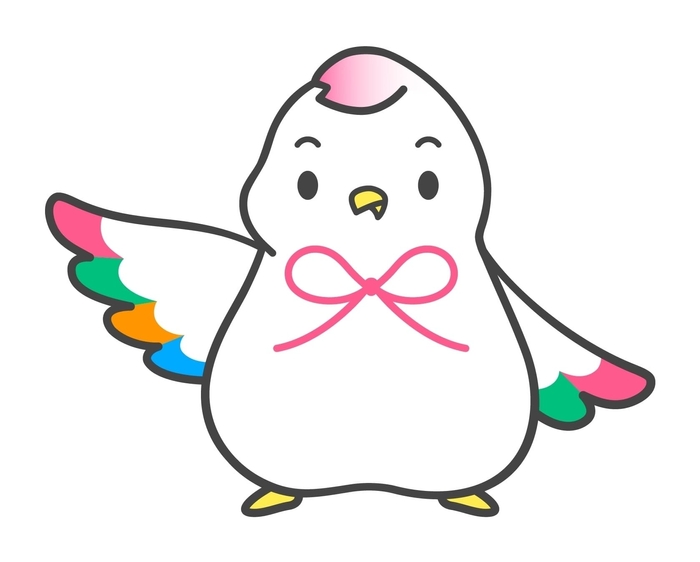【外見的特徴】リジョブのサービスロゴと同じ4色の羽としっぽを持っており、さくらんぼ11.2個分の大きさ