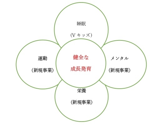 ママと子供の保健室を運営するチャイルドハピネス株式会社は、もともと子供の健全な成長発育の支援を理念に揚げ、既存事業としてVキッズという歯科技工物の販売を通し、睡眠の面からの支援を行ってきました。この度、企業以来のテーマであった「子供達の睡眠・栄養・運動などの面を含めた子供(及びその家族)のトータルケア」という共通のコンセプトを元に、弊社の強みである子供及びその母親への健康促進のノウハウを生かしたスクール・カウンセリング・セラピー事業を開始致します。これにより、運動・栄養の面も含めたすべての範囲をカバーすることができ、子供の健全な成長発育という社会福祉に貢献できると考えております。